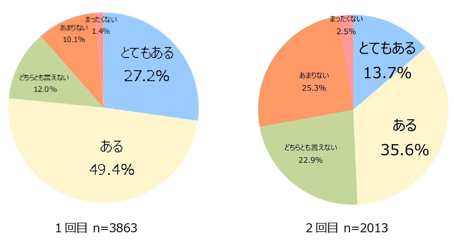・アレルギーへの不安(とてもある・ある)の割合は2回目で低下しました。