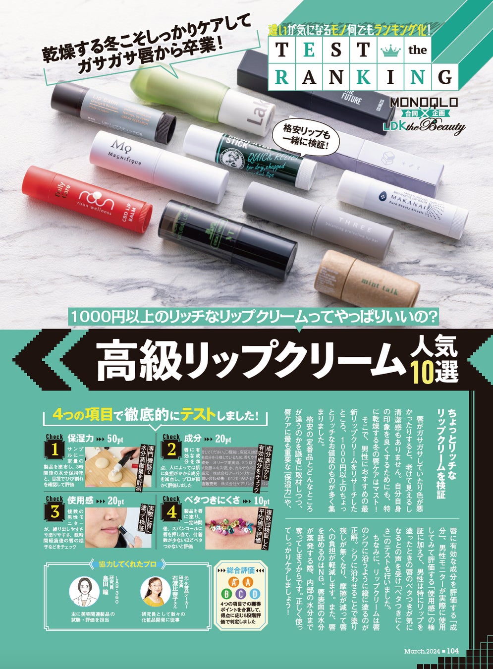 テストするモノ批評誌『MONOQLO』2024年3月号(1月18日発売)