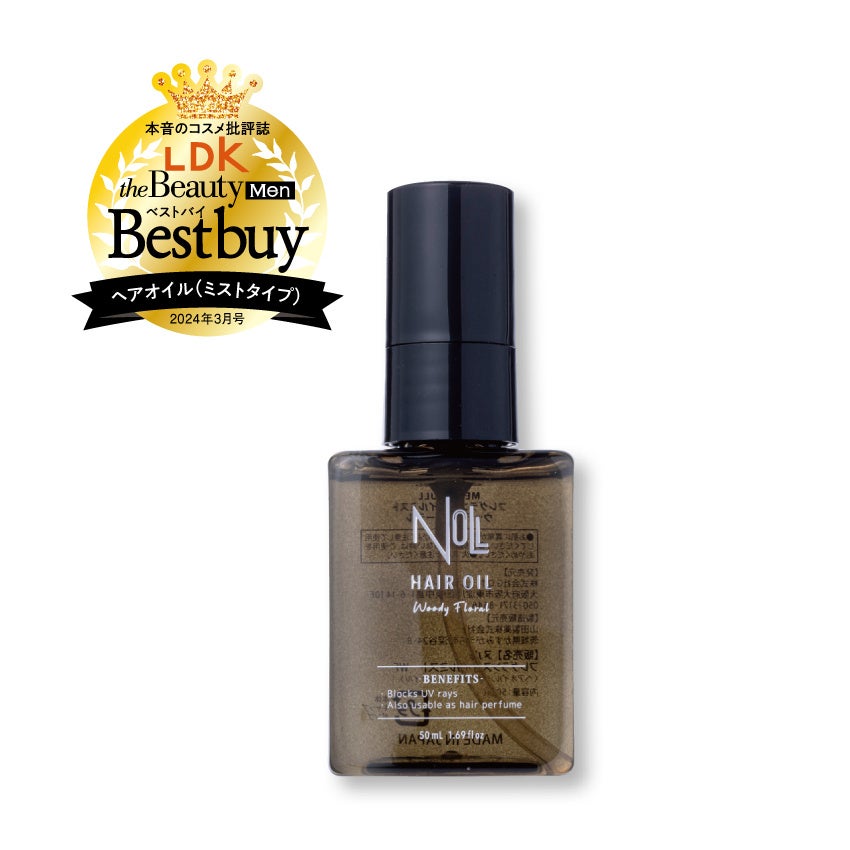 すべての検証で最高得点を出し、堂々ベストバイに! 髪を乾かした後はふんわり、翌朝の状態はサラサラしていてモニターから大好評! 髪が扱いやすくてスタイリングしやすいとの声も多数ありました。金木犀のほのかな香りもキツすぎず甘すぎないと高評価です。優れた保湿&補修成分も入っていて、ドライヤーでブローすることで、より扱いやすい髪質へと導いてくれます。髪のプロも一般男性も太鼓判を押した、最強のヘアオイルと言えるでしょう!