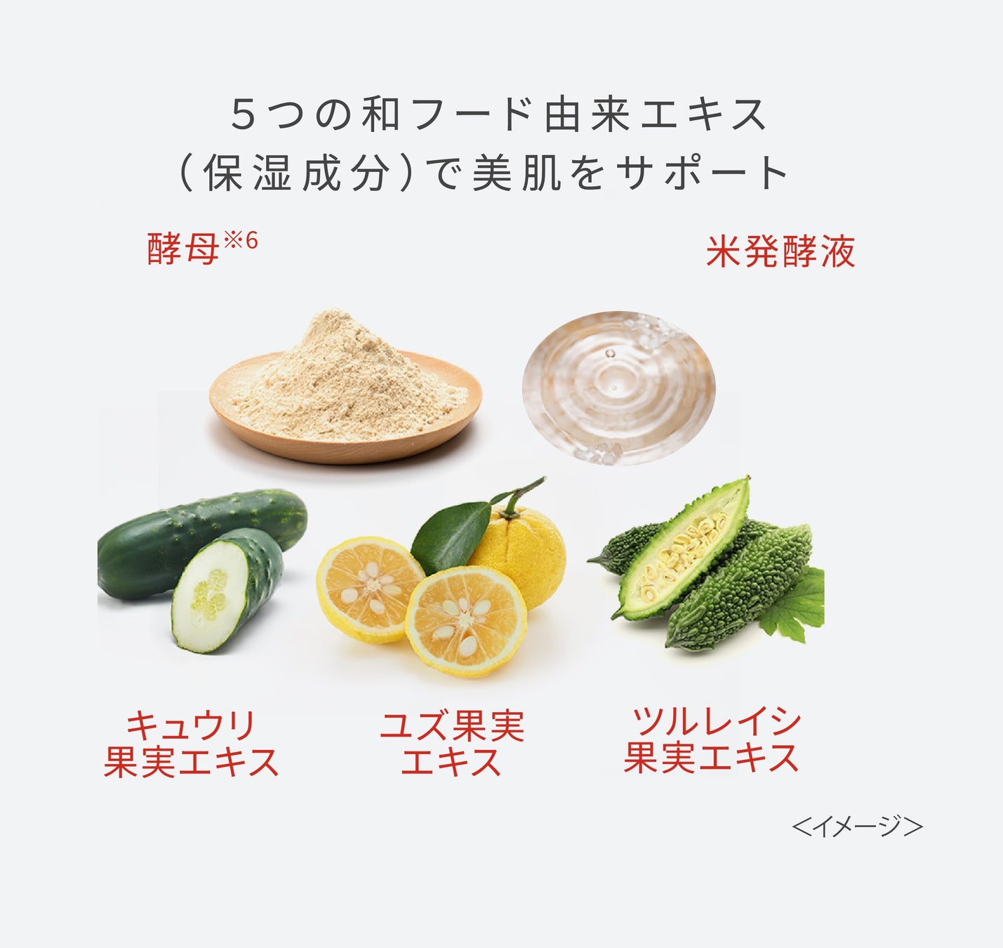 ③ 5つの和フード由来エキス(保湿成分)で美肌に導く