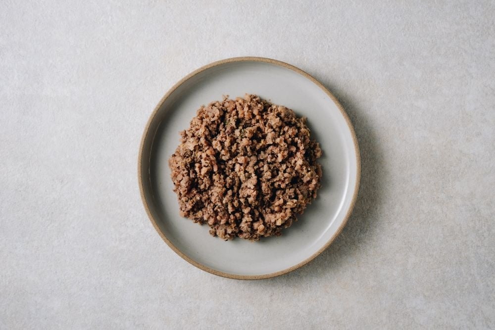 九州産の豚ハツを使用したごはん。鶏卵を使用していないので卵アレルギーのワンちゃんにもおすすめ!