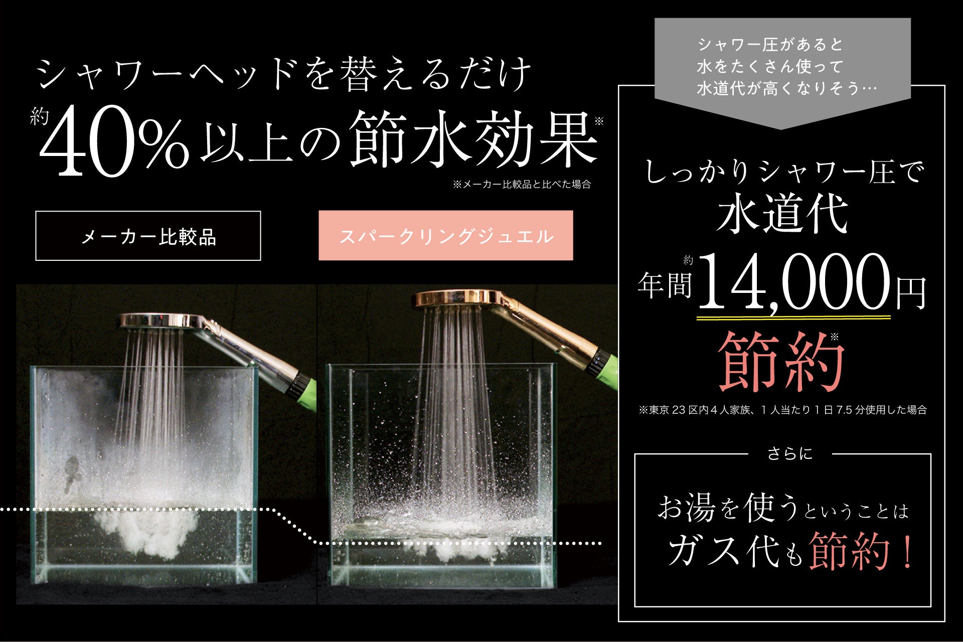 Sparkling Jewelは、しっかりシャワー圧なのになんと「40%以上の節水効果」が期待できます。