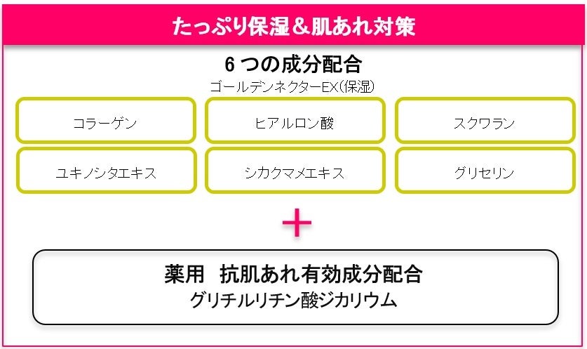 ○うるおい注入処方:年齢とともに硬くなった角層深くまで、スーッと溶け込むように浸透し、うるおいで満たします。