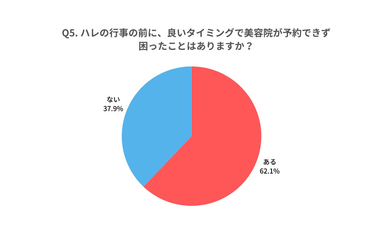 Q5:ハレの行事前、良いタイミングで美容院を予約できず困った経験のあるママが2人に1人