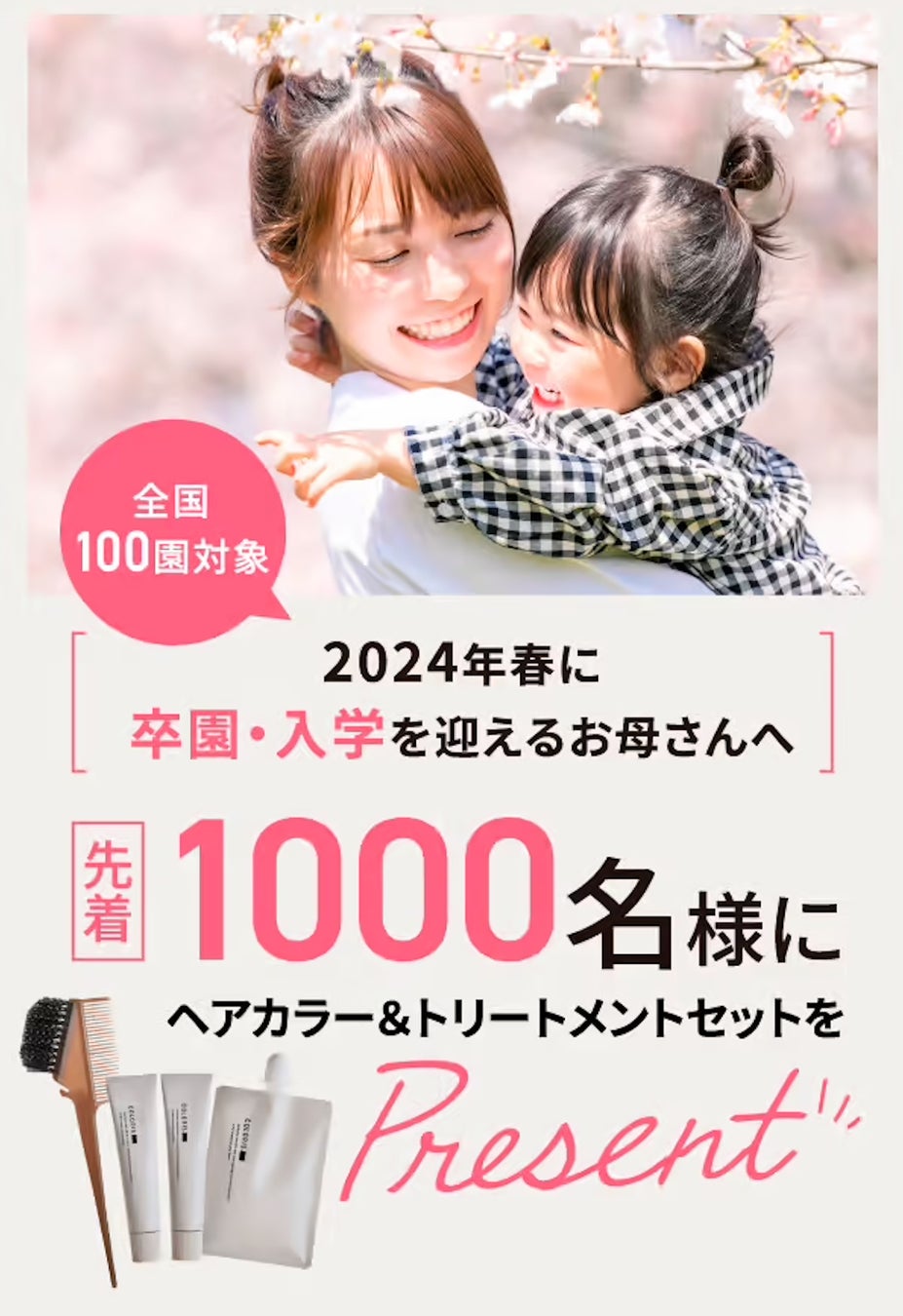 株式会社ストークメディエーション(本社:東京都渋谷区)が展開するオーダーメイドヘアカラーブランド「COLORIS(カラリス)」(以下 カラリス)は、本日より、全国の保育園100園と提携し、今春ハレの日を迎える1000名のママたちへ「ヘアカラー&トリートメントセット」をプレゼントする取り組みを開始いたします。