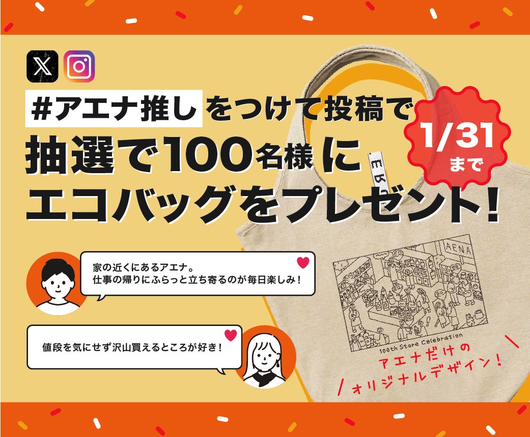 オフプライスストア「アエナ」100店舗突破!全店とSNSで祝100店舗キャンペーン開催