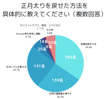 食事制限など短期集中型のダイエットで全体の87.7%の人がお正月太りをリセット!一方で52.3%の人がリバウンドを経験