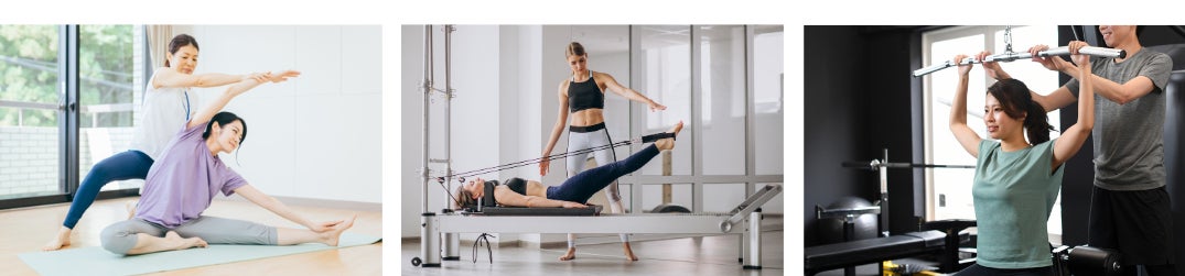 専門のトレーナーがついてカウンセリングから、トレーニングメニュー作成、栄養指導、フォームチェックまで担当するので、「何をしたらいいか分からない」「1人じゃ続かない」という方も安心。パーソナルなしのプランもございます。パーソナルストレッチ・ヨガ・リフォーマー等様々なメニューがあります。