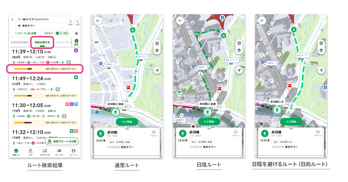 なお、『NAVITIME』アプリでは、「日陰を避けるルート」として本機能を提供します。
