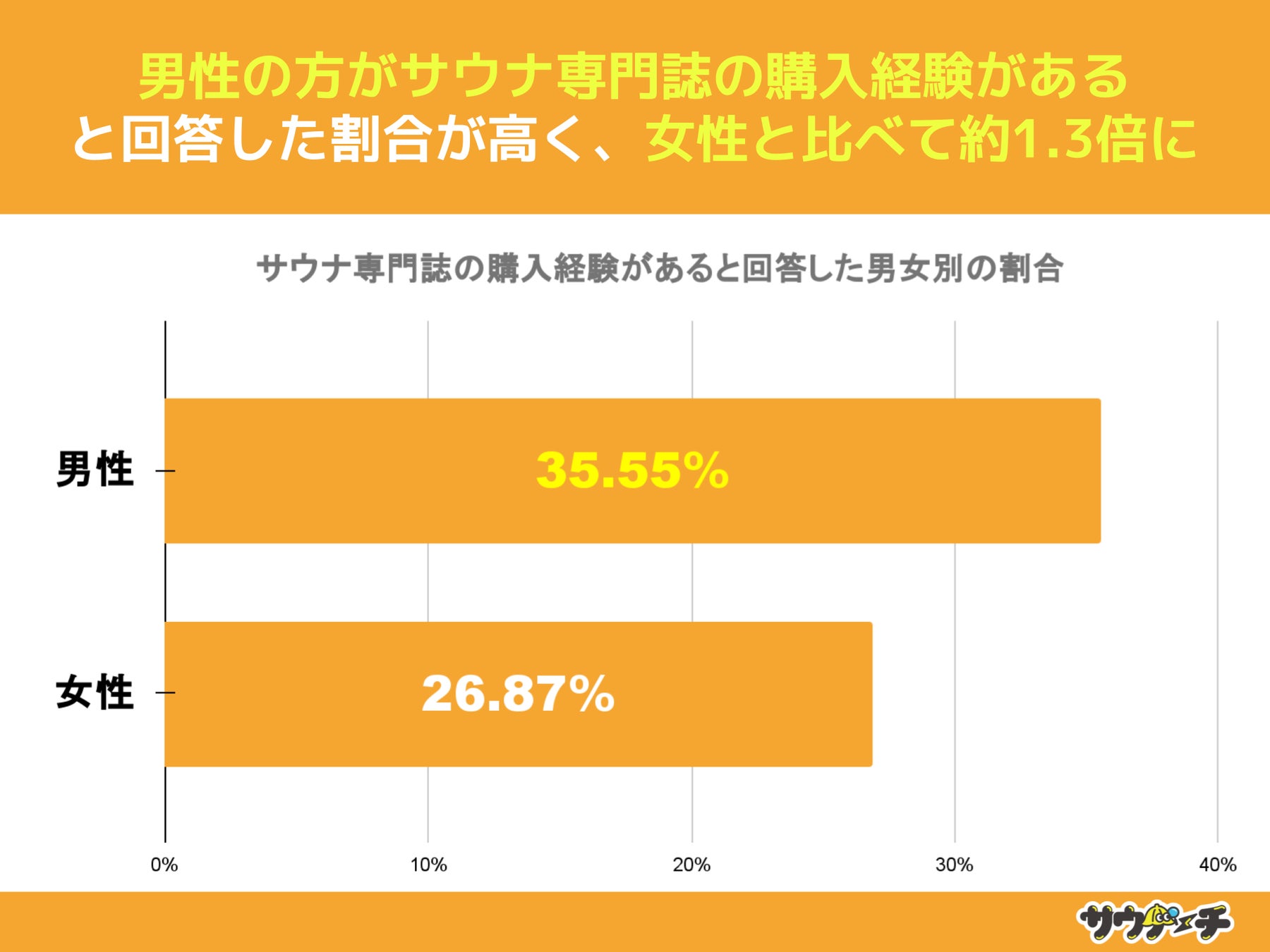 【男性の方がサウナ専門誌の購入経験があると回答した割合が高く、女性と比べて約1.3倍に】