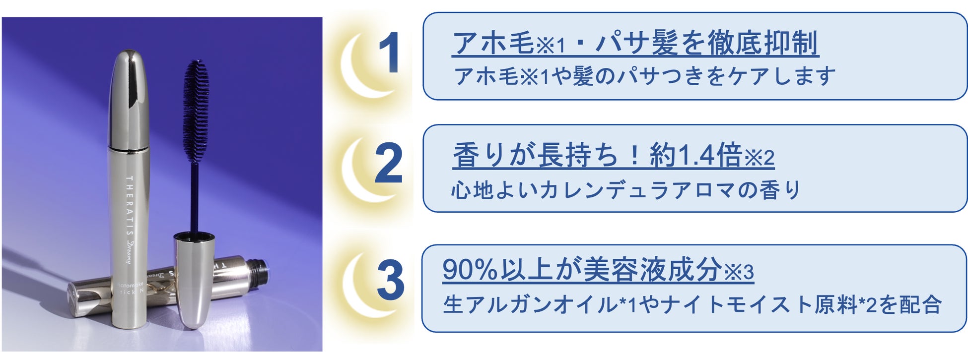 夜を味方につける“夜活美容”を提案する高機能ナイトケアブランド『THERATIS(セラティス)』 より、「ナイトリペア」「ドリーミー」「ムーンライト」の3シリーズ同時展開にて