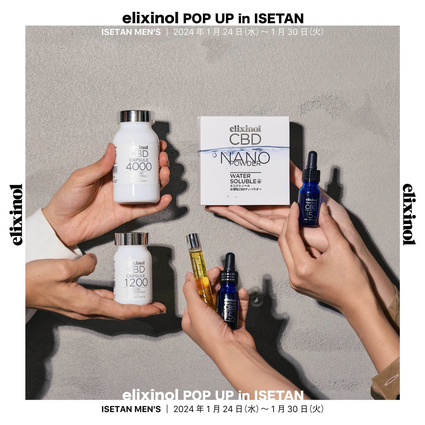 ポップアップでは、毎日続けやすいCBDカプセルの2個セットや、はじめてのCBDとしても人気のエリクシノールCBDティンクチャー500と塗るタイプのロールオン450がお得となったスペシャルセットをはじめ