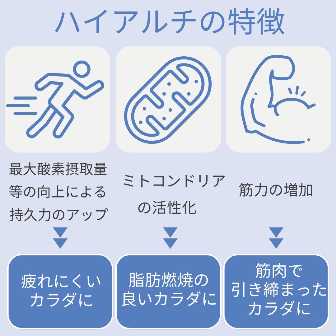 そして、高地トレーニングは、心肺機能や持久力が向上という疲れにくいカラダづくりにとどまらず、ミトコンドリアを中心とする、細胞の代謝を高めることによって、ダイエットからアンチエイジングまで寄与することがわかってきています。(低酸素環境下での運動効果に関する詳細こちら:https://high-alti.jp/)