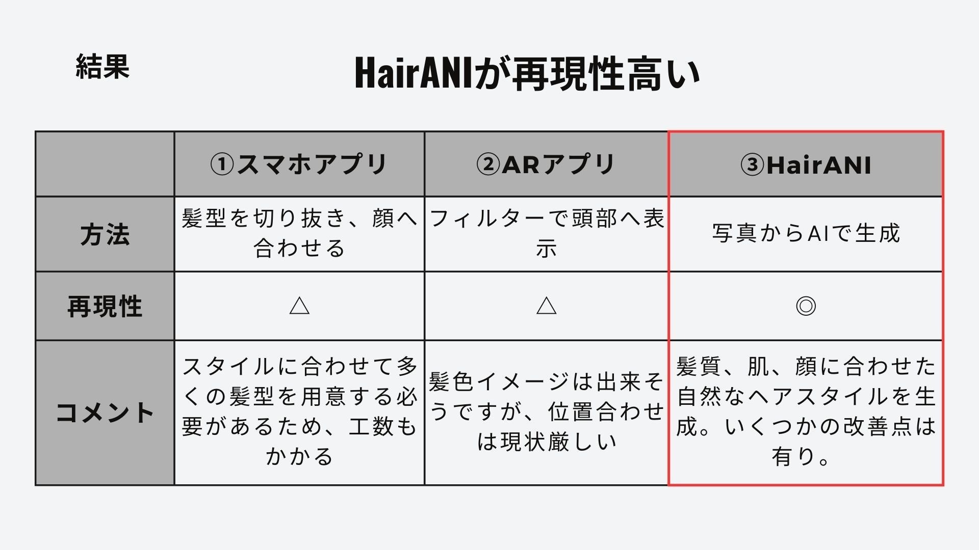 HairANIの生成技術は、高い再現性とカスタマイズ可能性を備えており、美容業界や医療業界、マッチング業界などにおいても幅広く活用されることが期待されます。