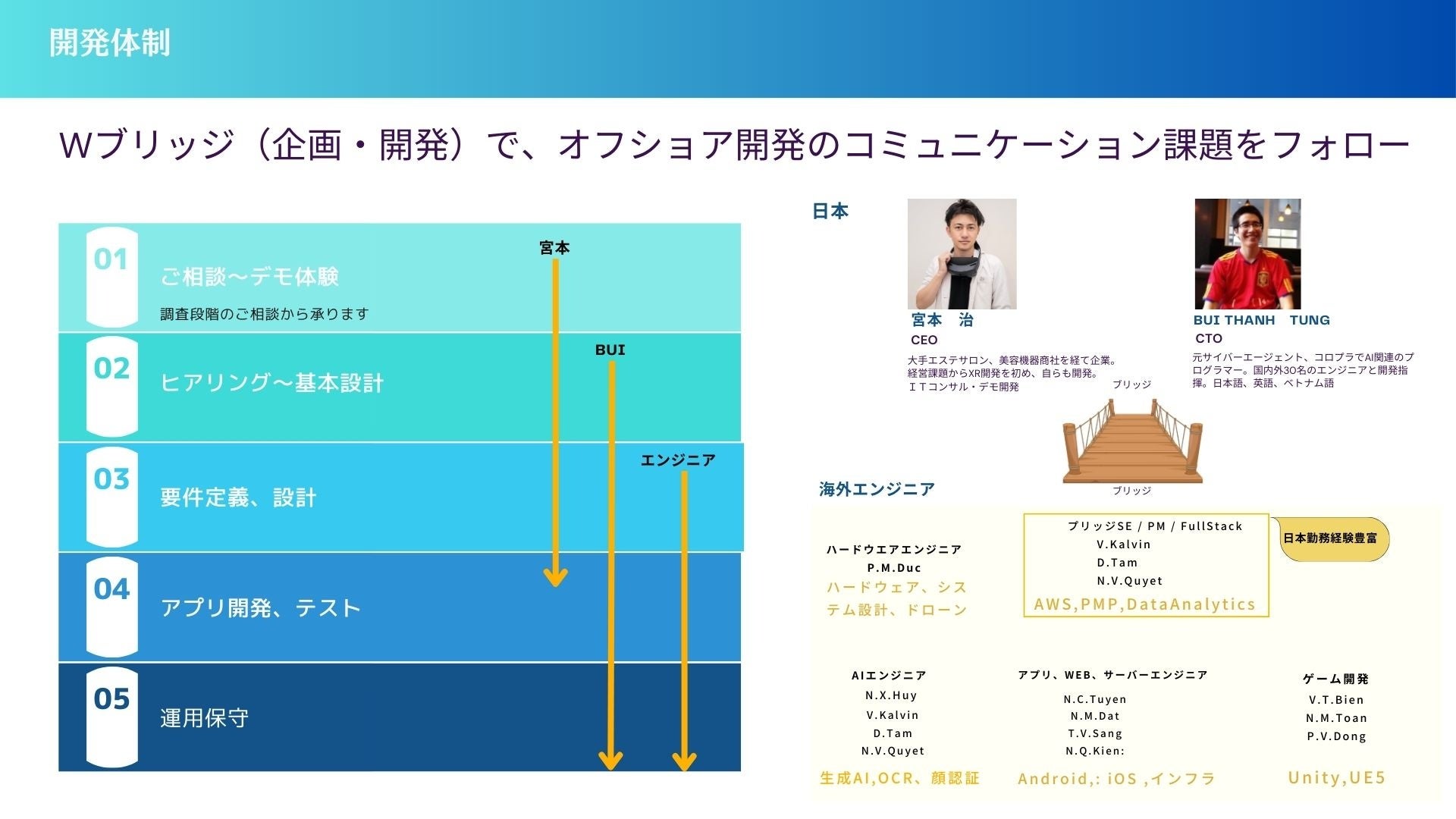 開発はCEOの宮本治とパートナーCTOのBUIがリードします。