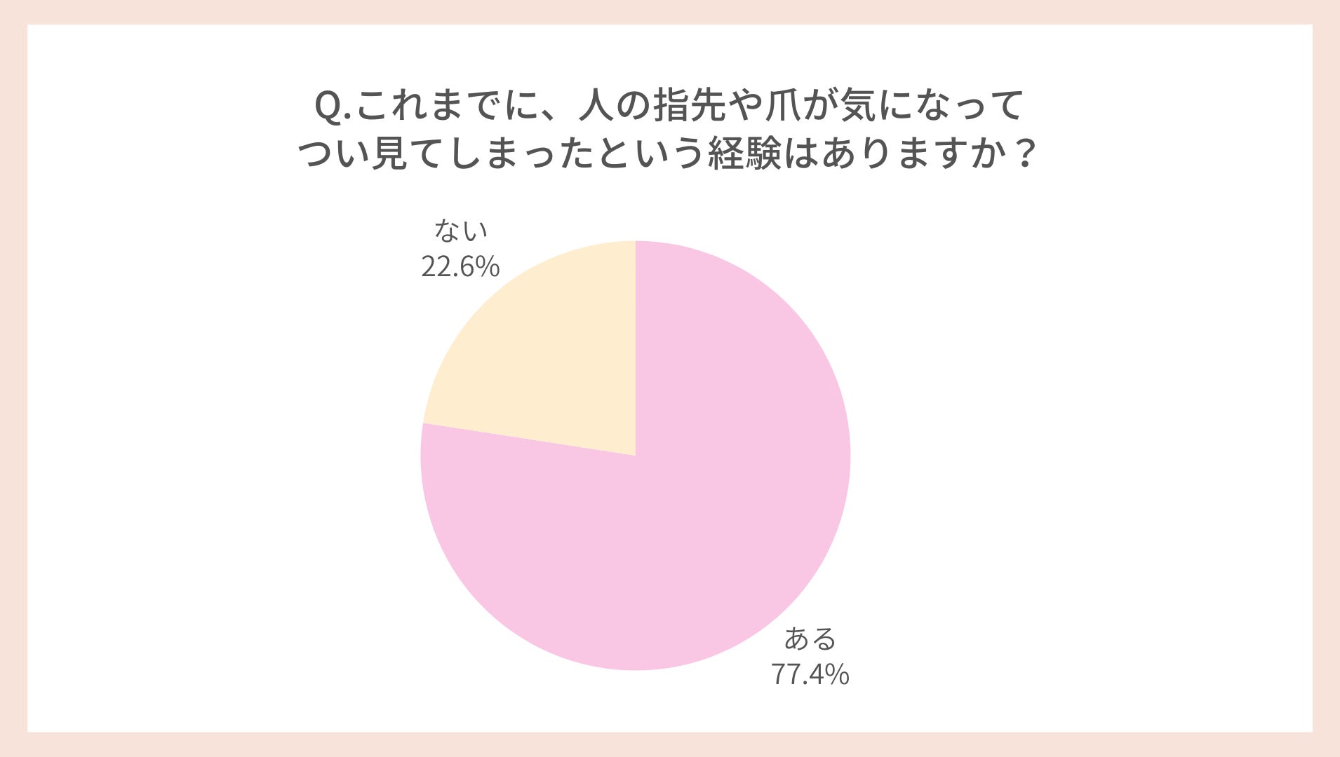 「これまでに人の指先や爪が気になってつい見てしまったという経験はありますか?」と尋ねたところ、「ある」と回答した女性は77.4%に上りました。