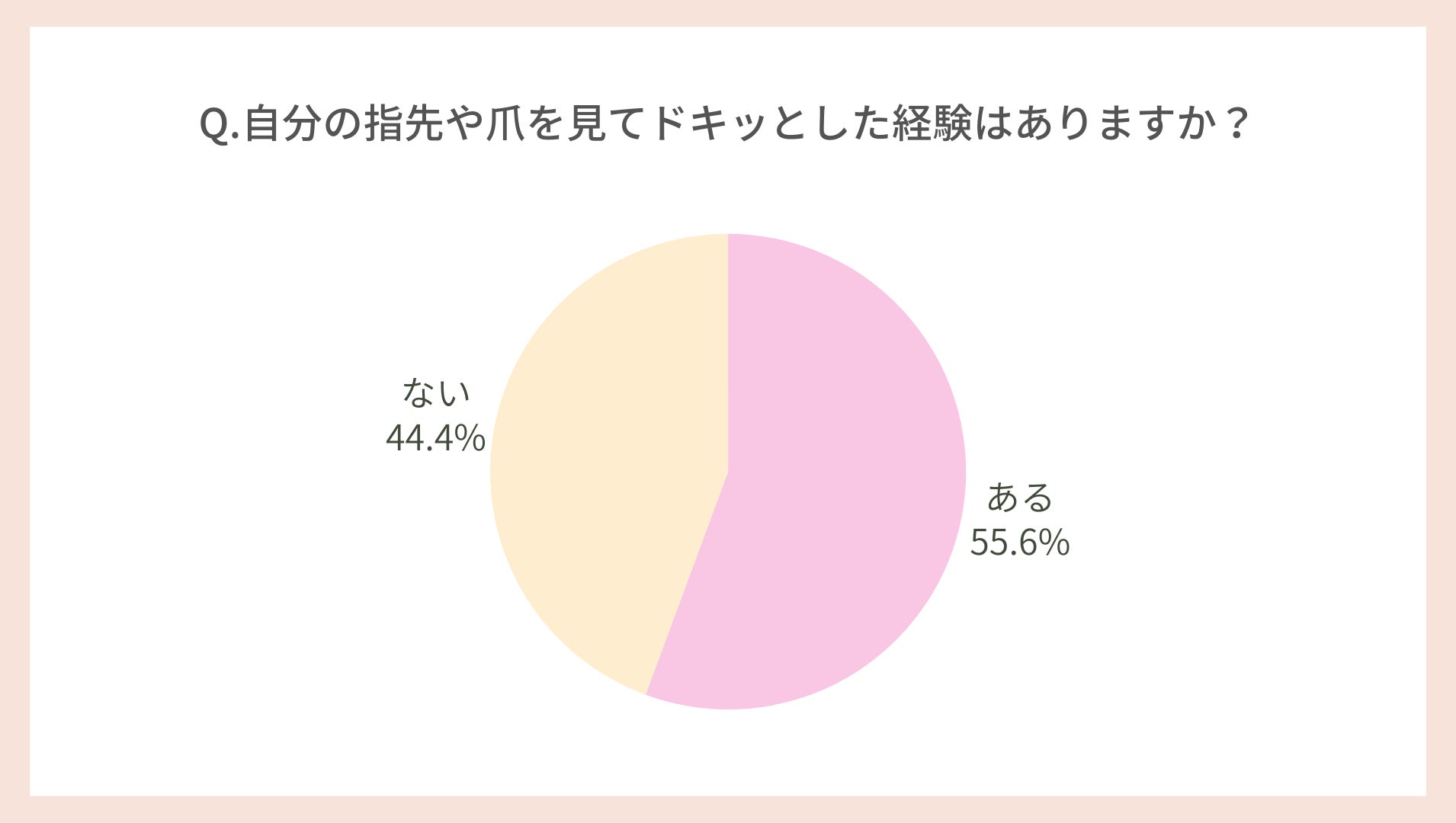 ふと目につくのは他人の爪だけではありません。「自分の爪や指先を見てドキッとした経験がある」と答えた女性は、全体の55.6%でした。