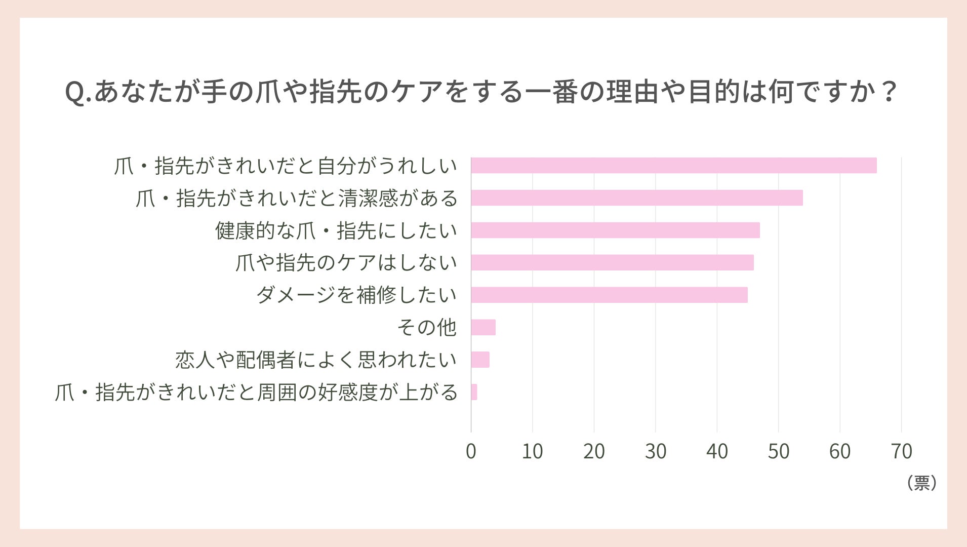 アンケートで「爪や指先のケアをする一番の理由は何ですか?」と質問したところ、以下の結果となりました。