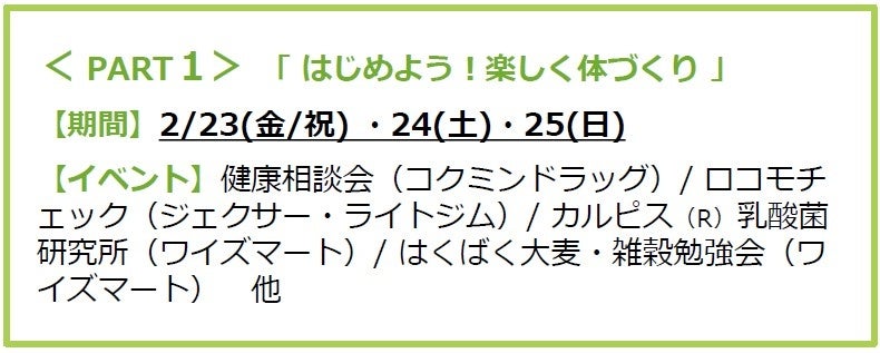 株式会社ジェイアール東日本都市開発が運営する、JR総武線市川駅直結のショッピングセンター・シャポー市川は、1/22(月)から3/21(木)まで、「健康WEEKs」を初開催いたします。