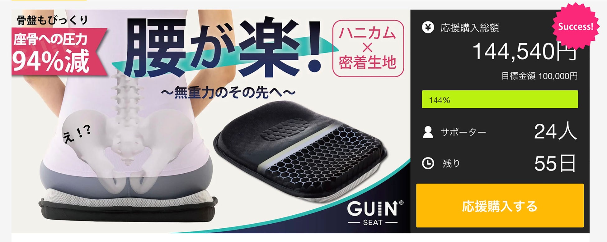 株式会社サン・リット企画(所在地:愛知県名古屋市、代表取締役社長:岡田 利哉)は、自社ブランド MAOMAの新商品【GUIN-SEAT-(グインシート)】の先行予約販売を応援購入サイト「Makuake」にて2024年1月25日(木)に開始し、開始から6分で目標金額を達成いたしました。