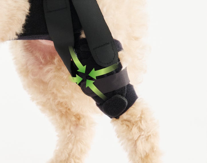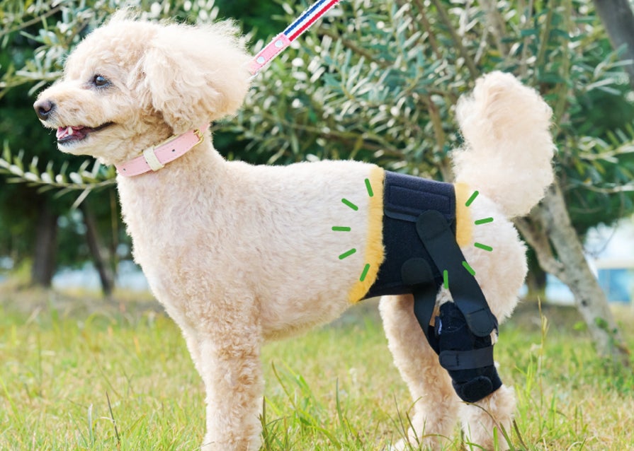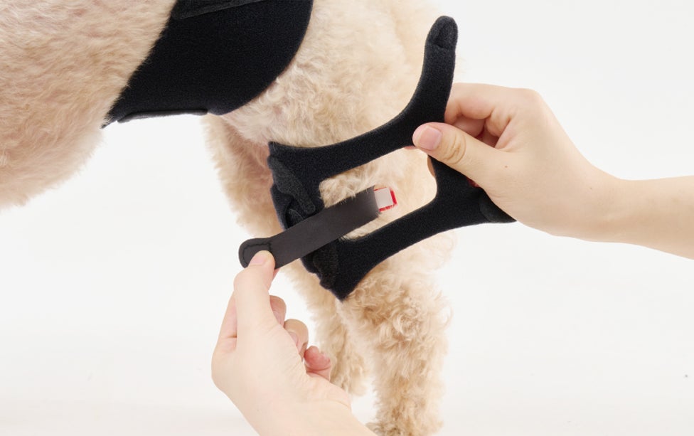 腰サポーターによっておなか回りを圧迫し、腰を支えます。お散歩に欠かせない、踏ん張る力をサポートします。