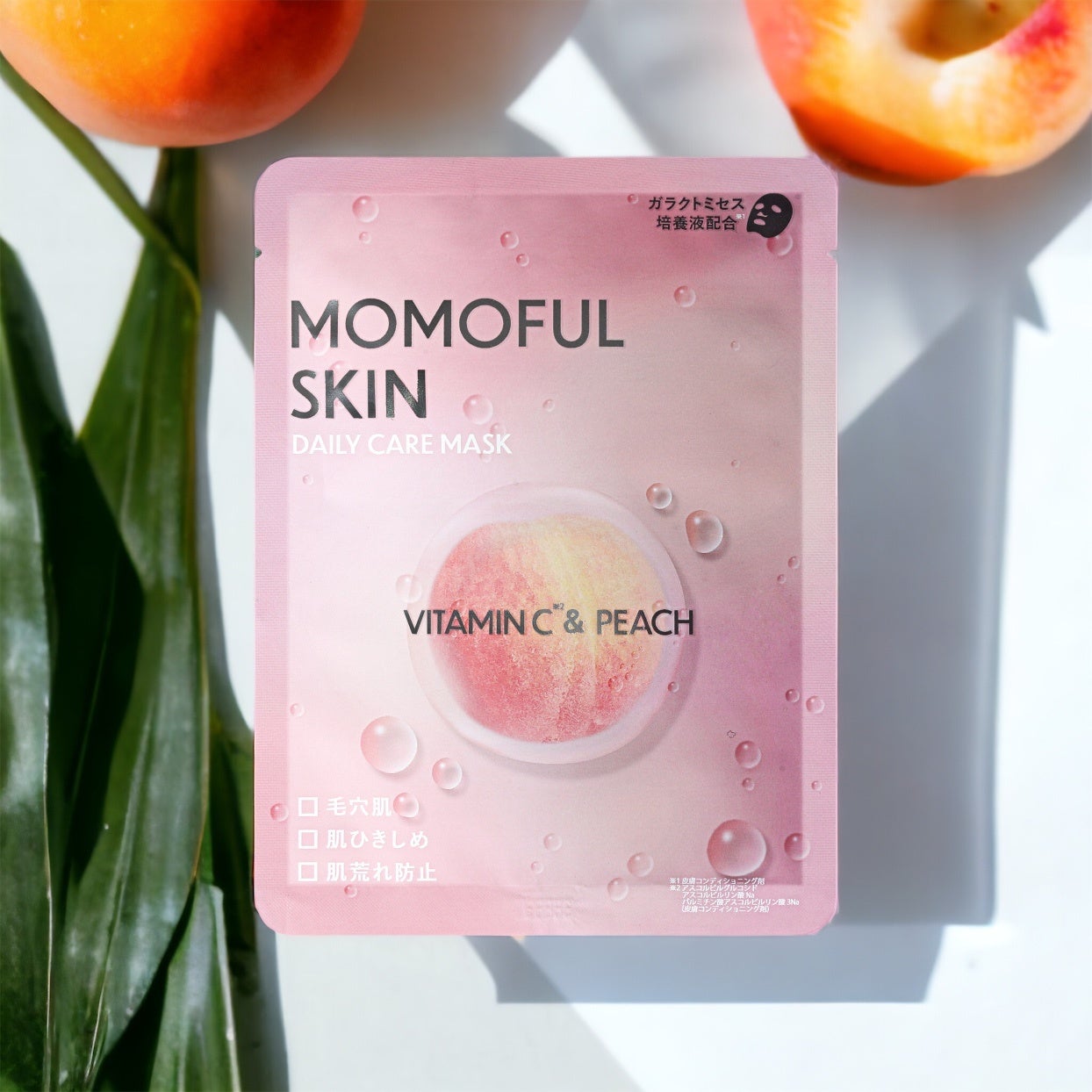 momofulskinフェイスマスクには、ガラクトミセス培養液(※1)、ビタミンC(※2)、レチノール(※3)、NMN(※4)、ナイアシンアミドなど、美容の最前線に立つ成分がたっぷり配合されています。これらの成分が肌を活性化し、潤いと輝きを与えます。
