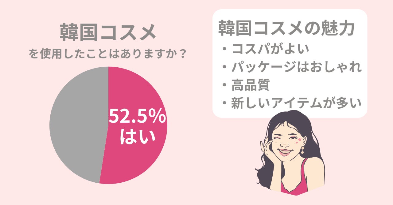 株式会社アースケアは20~30歳の女性100名に「韓国コスメ」に関する調査を行いました。<調査結果>52.5%の女性が韓国コスメの使用経験がある