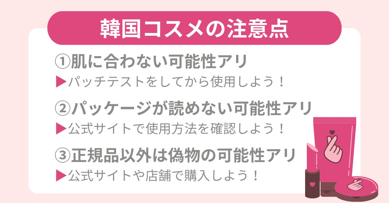 以下では、韓国コスメの注意点と、対策方法を紹介します。