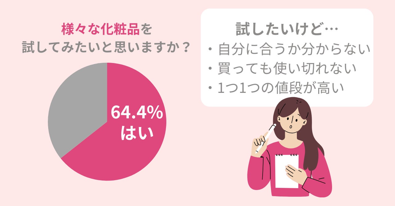 64.4%の女性が「様々な化粧品を試してみたい」と思う