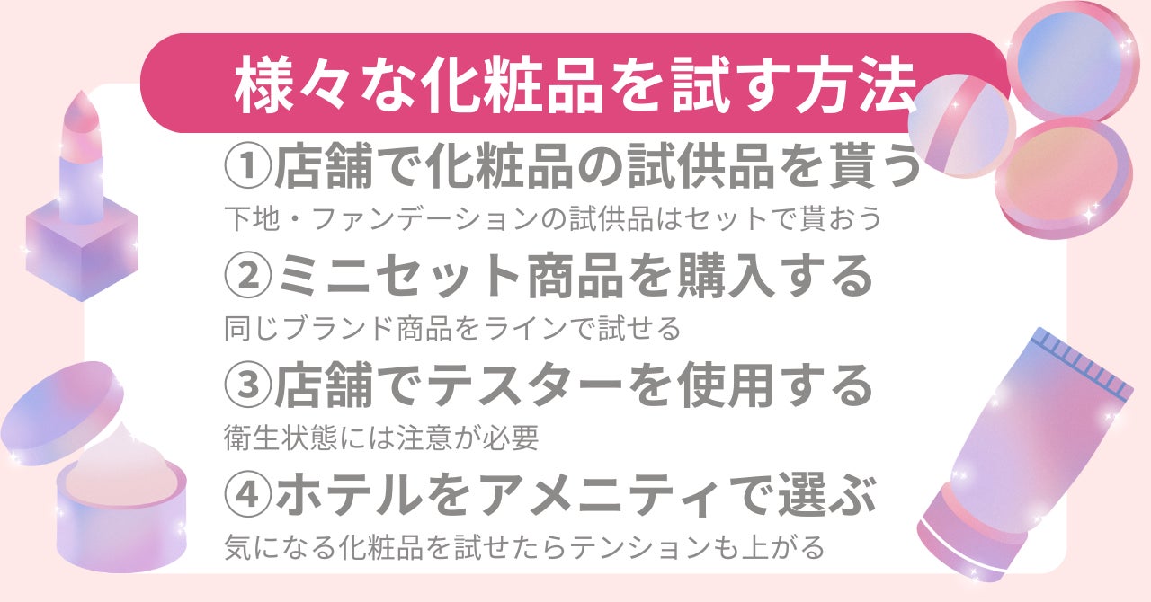 化粧品本品を購入する以外に、どのような方法で化粧品を試せばいいのでしょうか?
