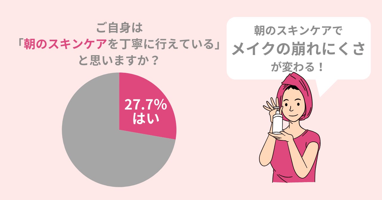 朝のスキンケア、手を抜いていませんか?株式会社アースケアは20〜30歳の女性100名に「朝のスキンケア」に関する調査実施。27.7%の女性が自分は「朝のスキンケアを丁寧に行えている」と思っている!
