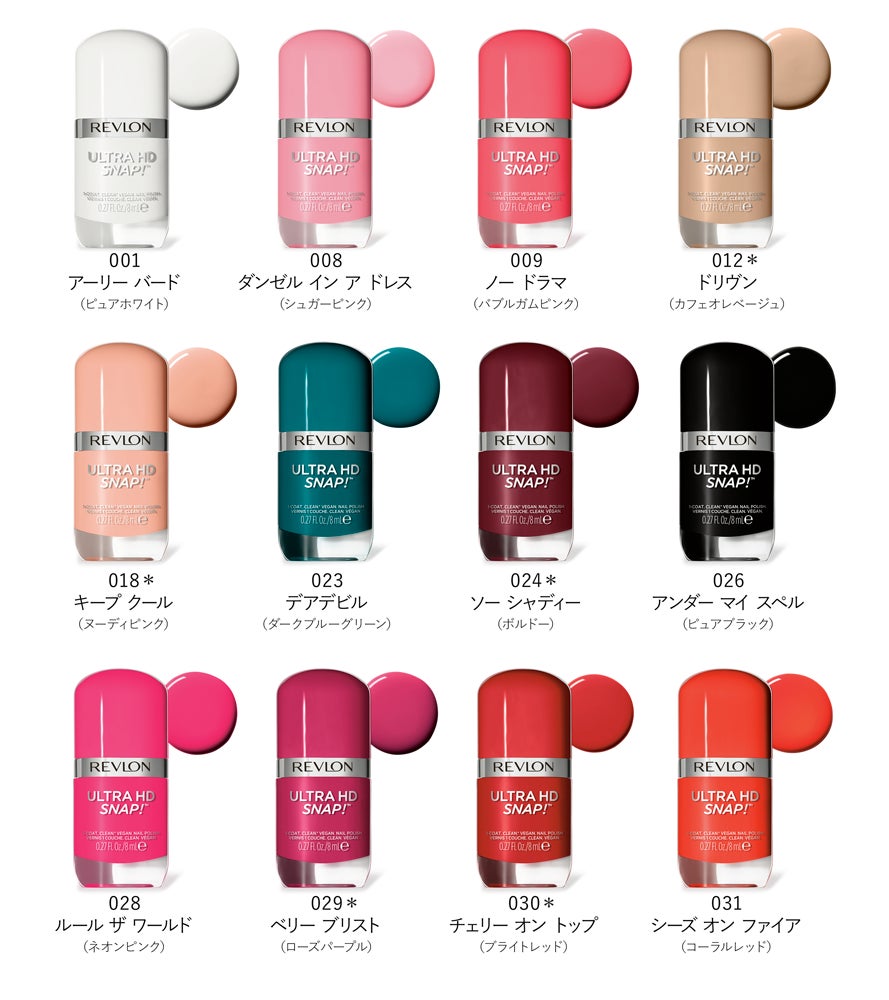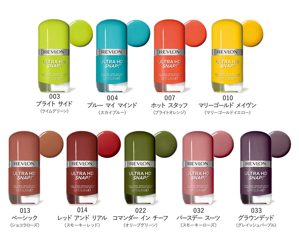 ひと塗りで、速乾&高発色!ヴィーガンネイル『レブロン ウルトラ HD スナップ!』 <限定色>3色<既存色>9色 <オンライン限定色> 12色