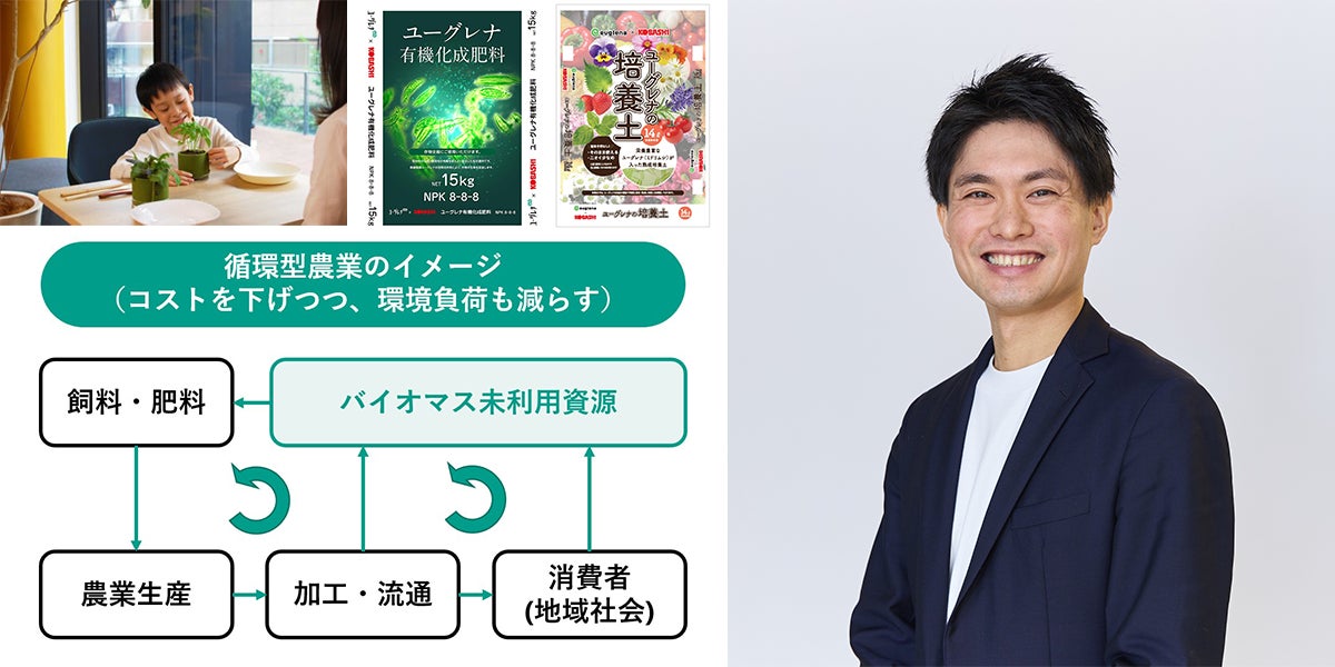 本事業では、微細藻類ユーグレナなどをはじめとする当社素材や副産物、未利用資源などを活用した循環型農業の実現を目指し、微細藻類や、バイオ燃料の原料となる油脂を微細藻類から抽出した後の残渣、そのほかユーグレナ・グループ内外の未利用資源を、飼料や肥料へ活用していく取り組みを推進しています。今回のライブ配信では、ユーグレナ社の執行役員であり、新規事業本部長の井上陽介が、本事業の概要や事業立ち上げから現在までの取り組みなどをご紹介する予定です。