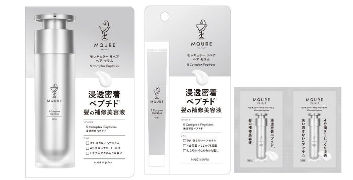 MQURE(エムキュア)モレキュラーリペアヘアセラムは、ネイチャーラボグループのセルラボが培ってきた、機能性原料の組み合わせから、複数種の毛髪補修ペプチド分子※2 を配合した処方を採用しています。髪の内部ダメージから、キューティクルまでを補修することで、様々な髪質、髪悩みも理想的な仕上がりに導きます。