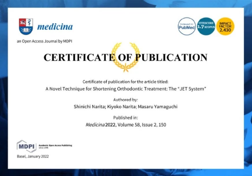 医院独自の新しい矯正治療である「JETシステム」は2022年1月に電子版英文誌へ論文が掲載され、世界的に認められた治療になりました。