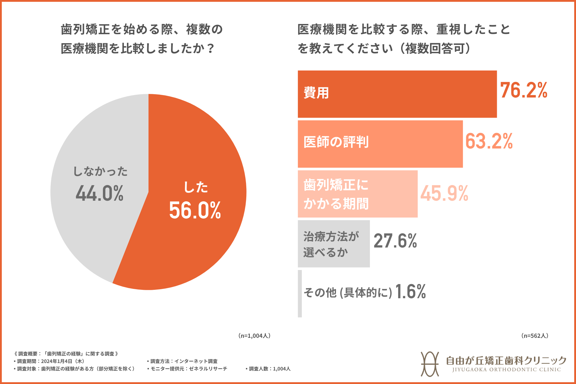 はじめに、歯列矯正を始める際に、複数の医療機関との比較を行った方の割合について調査しました。
