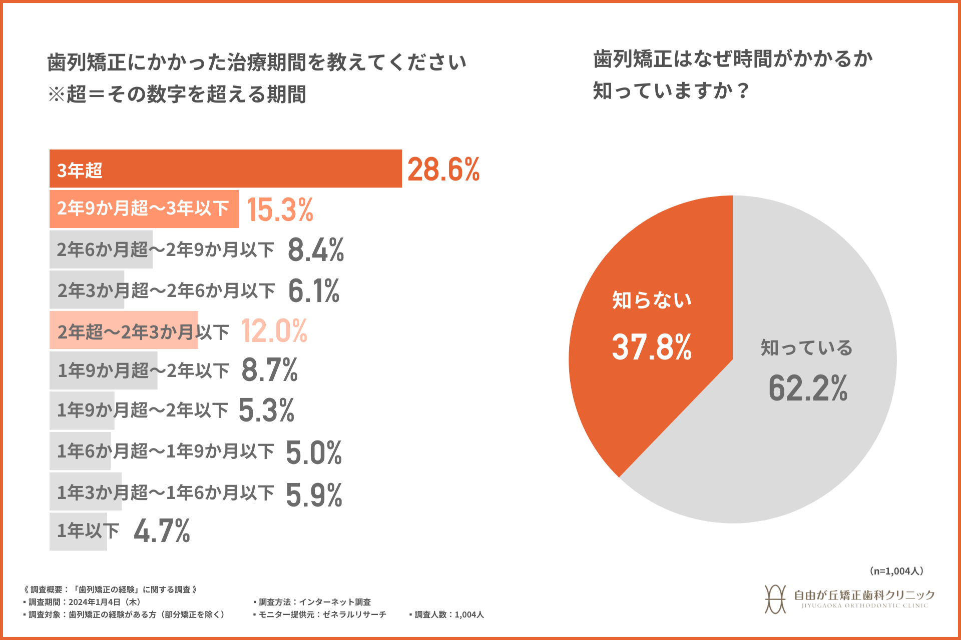 最後に、「歯列矯正はなぜ時間がかかるか知っていますか?」と質問したところ、約4割の方が『知らない(37.8%)』と回答しました。