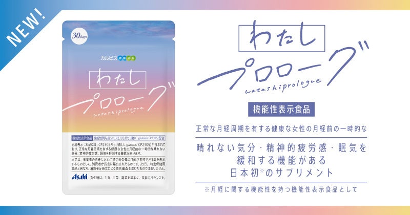 健康食品の通信販売ブランド「カルピス健康通販」にて2024年1月25日(木)より発売。アサヒグループ独自の乳酸菌「CP2305ガセリ菌」を配合したフェムケア*¹商品で、月経に関する機能性(健康な女性の月経前の一時的な晴れない気分の軽減)を訴求する機能性表示食品は日本初*²。