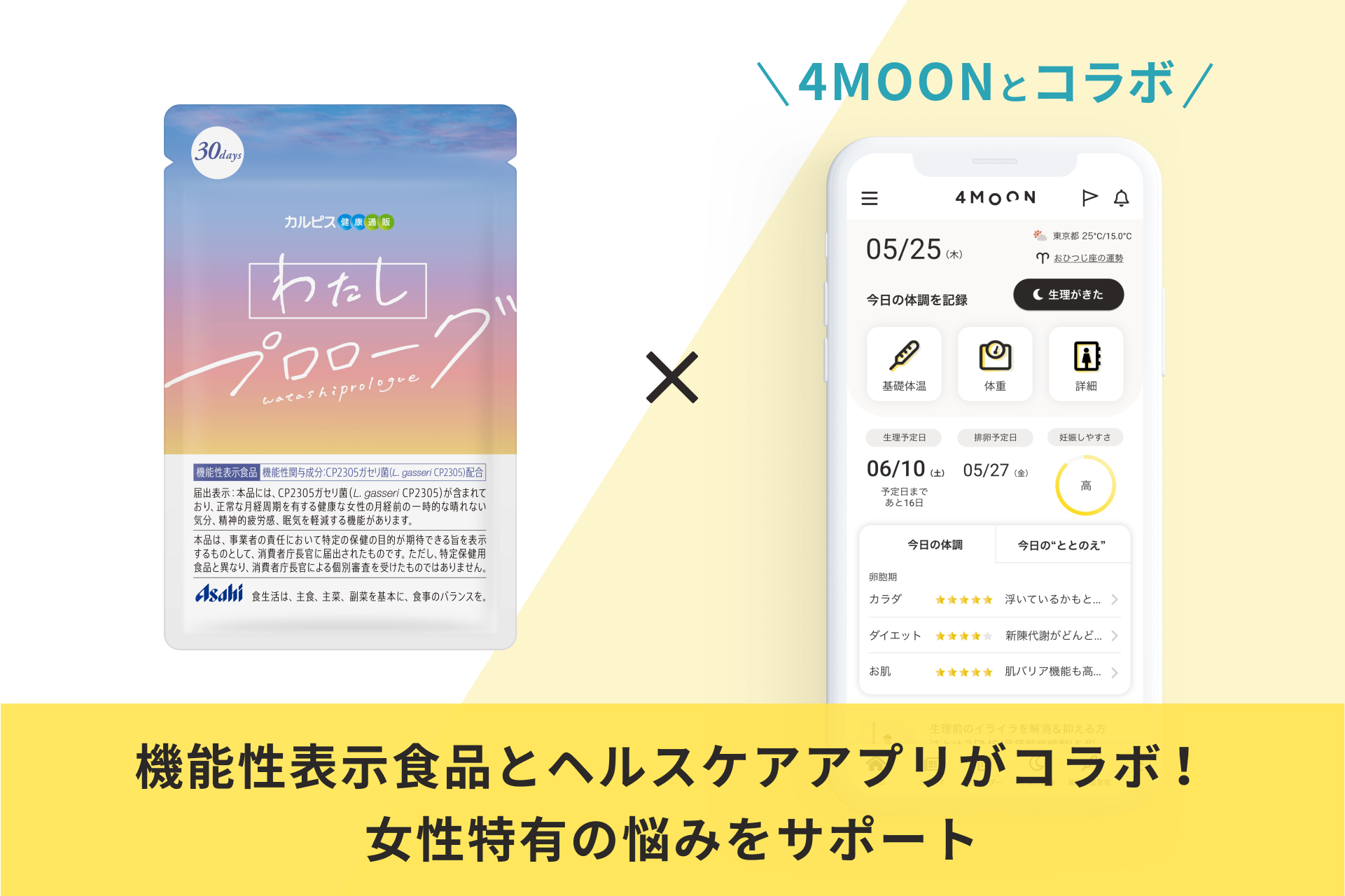 「健康な女性の月経前の一時的な晴れない気分の軽減」を訴求する日本初*²の機能性表示食品『わたしプロローグ』定期購入で、ヘルスケアアプリ『4MOON(フォームーン)』プレミアムプラン特別優待など