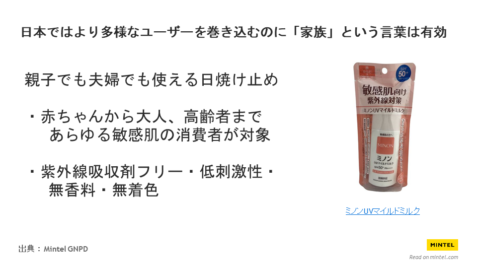 【家族をターゲットにしたBPC製品の例ー家族みんなで使える日焼け止め】
