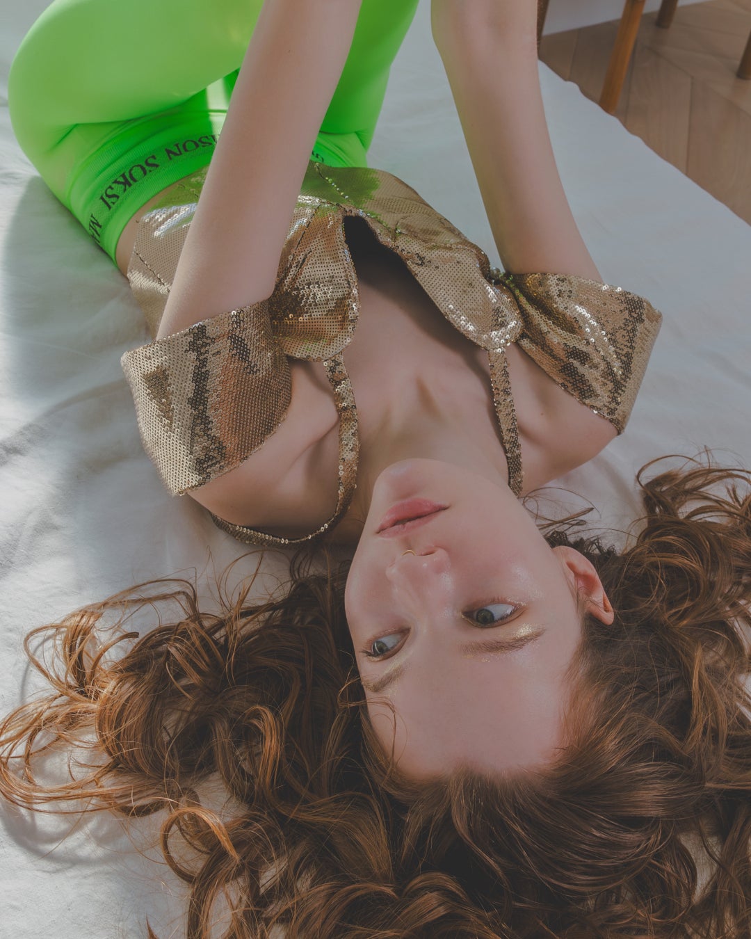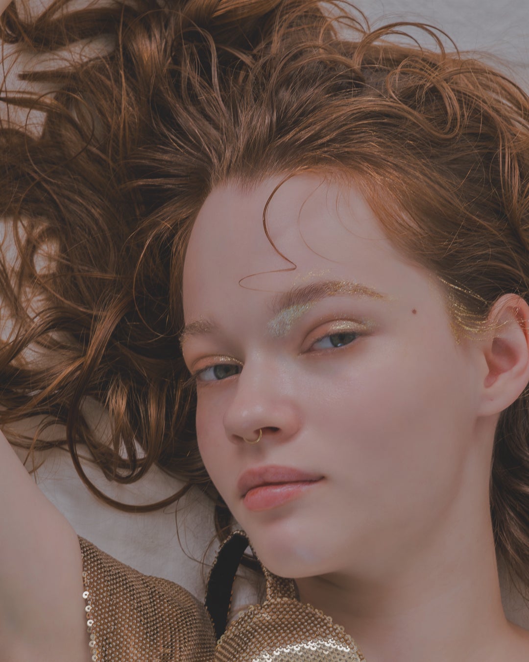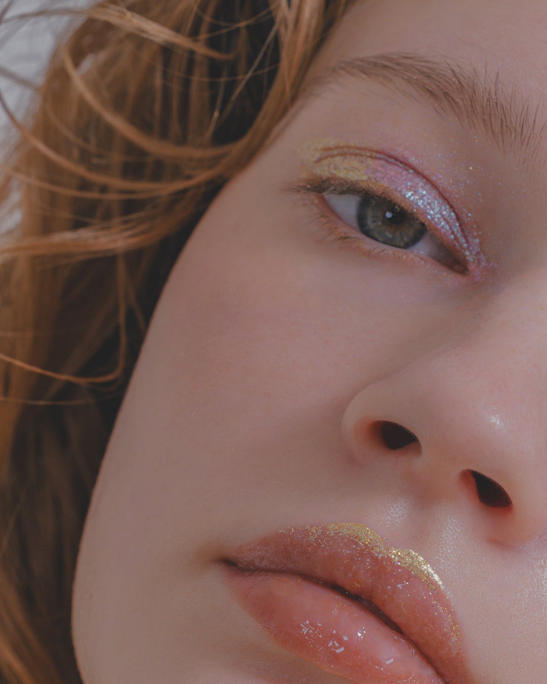 メイクの主役になるイエローゴールドにシルバーのグリッターをミックス。