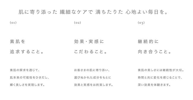 水分・油分を補って保ち、お肌へ潤いやハリ感を与えます。乾燥やハリ不足によるくすみや、毛穴の目立たない、美しい素肌を叶えます。