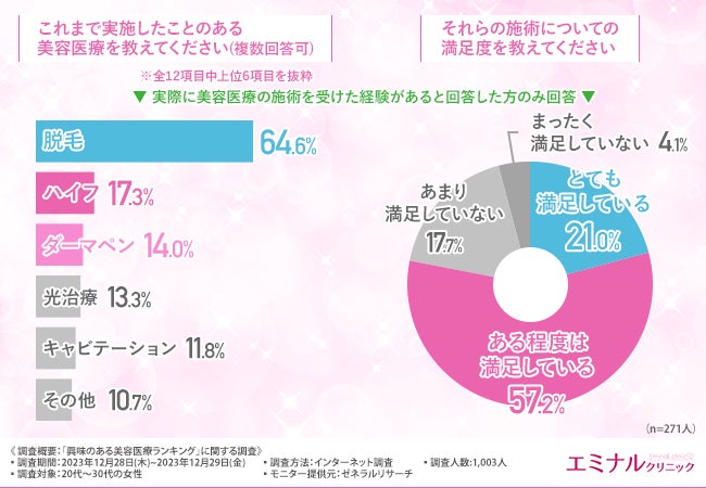 美容医療経験者の約6割が【脱毛】を実施済み 施術の満足度は