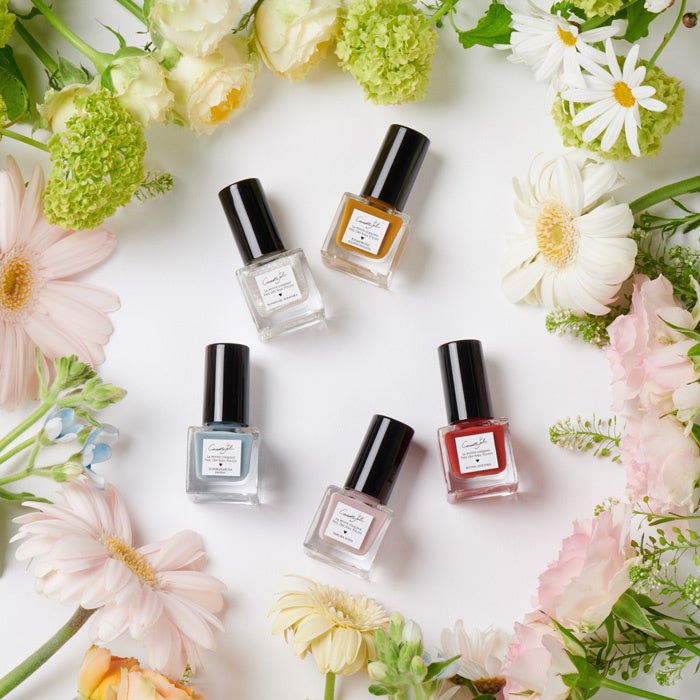ネイルカラーは⽇本⼈の感性に訴えかけるような花や⾃然の美しさを表現し、⽇本⼈の肌の⾊になじむように作られたマニキュアです。塗りやすく速乾性に優れており、トルエンやパラベンなどを配合していない健康に配慮した8⼤フリー製品となっております。
