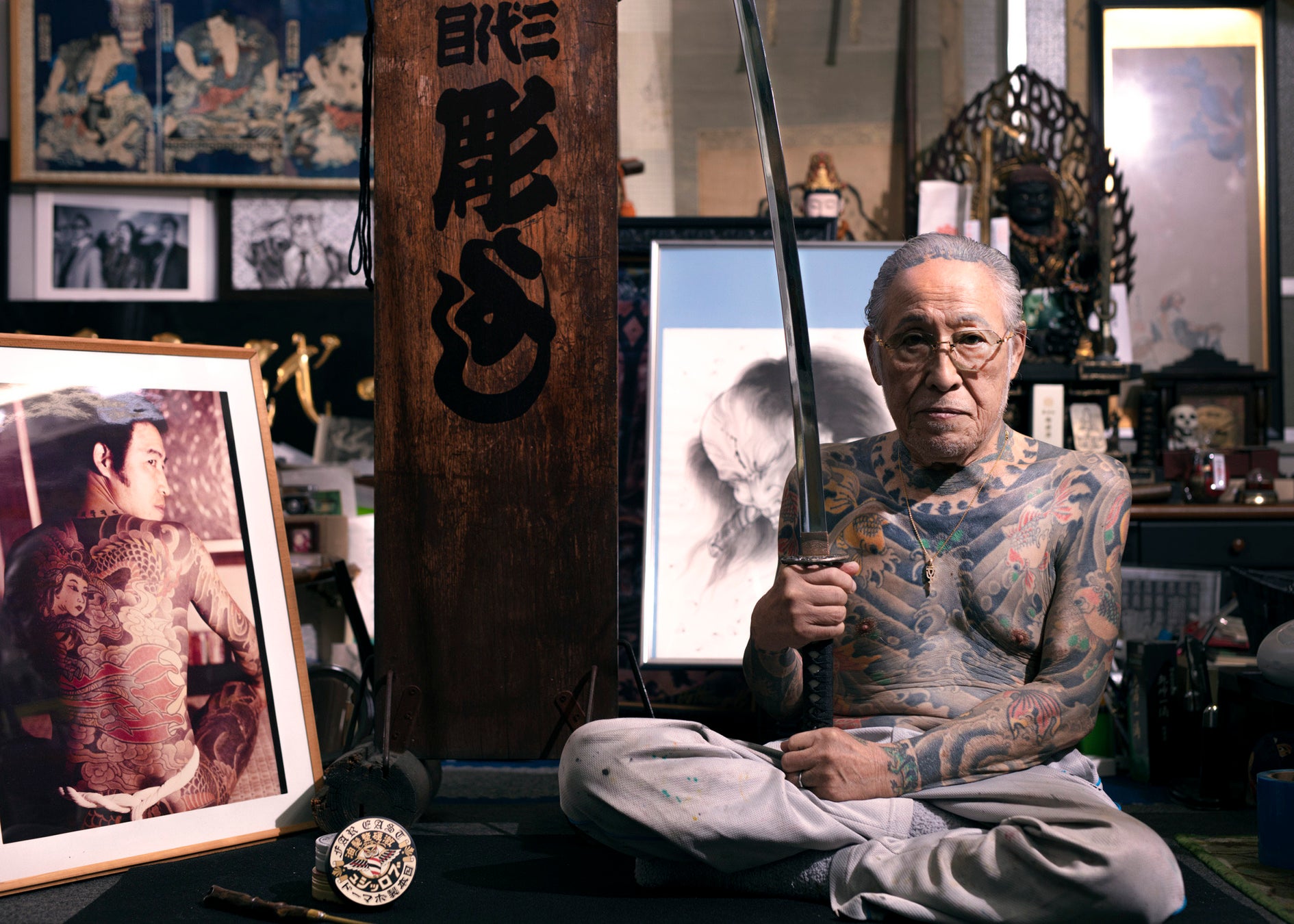1946年静岡生まれ。21歳で横浜初代彫よし氏の元を訪れて、天女と龍の刺青を授かり、1971年より部屋の住み込み弟子として入門。1979年、三代目彫よしを襲名。1980年代より海外のタトゥー・コンベンションに参加し、世界のタトゥー・アーティストたちと交流を持つ。研究資料のために蒐集されたものは、横浜の『文身歴史資料館』にて広く一般に公開し、伝統文化の伝承にも尽力している。自身の作品集も多数出版。