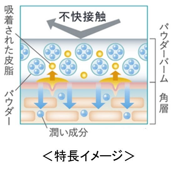 肌の皮脂や水分に反応して潤い成分(セラミド機能成分*1)を放出する、花王独自の「セラミドケア*2パウダリー処方」により、肌表面の汗や余分な皮脂などを吸着しながら、肌(角層)には潤いを補給することが可能となりました。