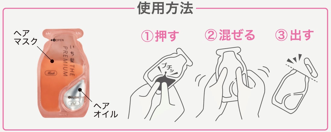美容のプロの裏技に着目し、「ヘアマスク」と「美容オイル」、2つの剤形を混ぜて、髪の外側も内部も同時ケアします。