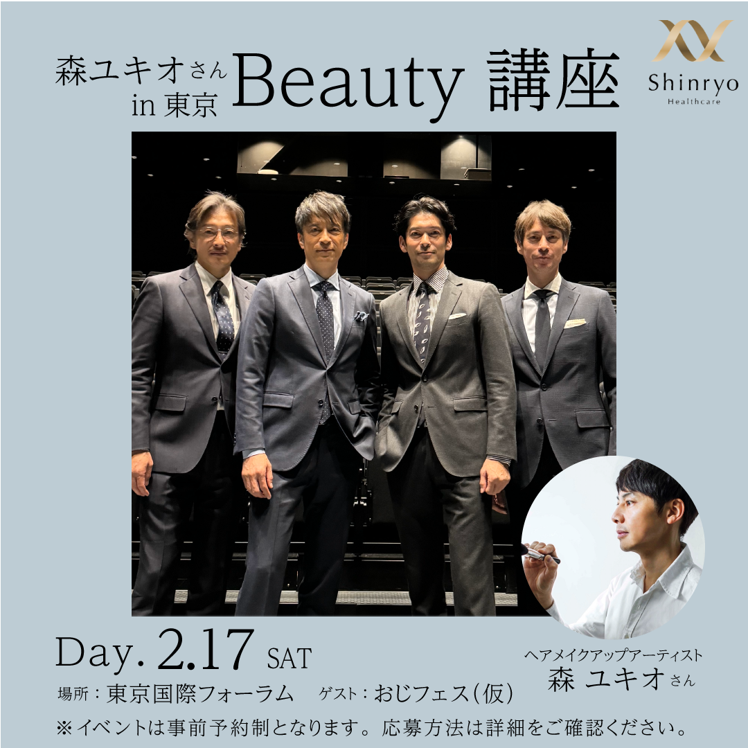 東京では初!東京国際フォーラムにて森ユキオさんのBeauty講座イベントを開催します。今回もゲストとして出演いただくのは、人気メンズモデル「おじフェス(仮)」のみなさん(直樹さん、加藤章太郎さん、TAROさん、久保⽥裕之さん)。