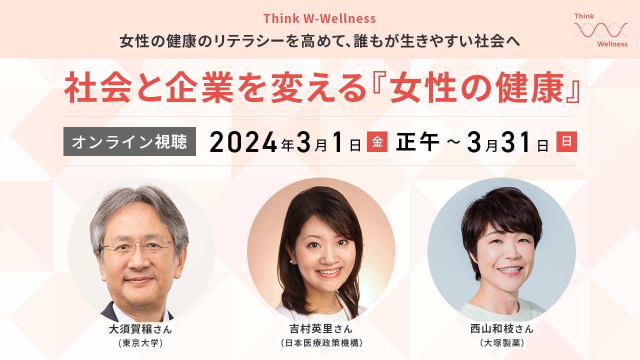 株式会社朝日新聞社(代表取締役社長:中村史郎)は、女性の健康を支援するプロジェクト「Think W-Wellness」のオンラインイベント「社会と企業を変える『女性の健康』」を3月1日(金)正午から配信します。