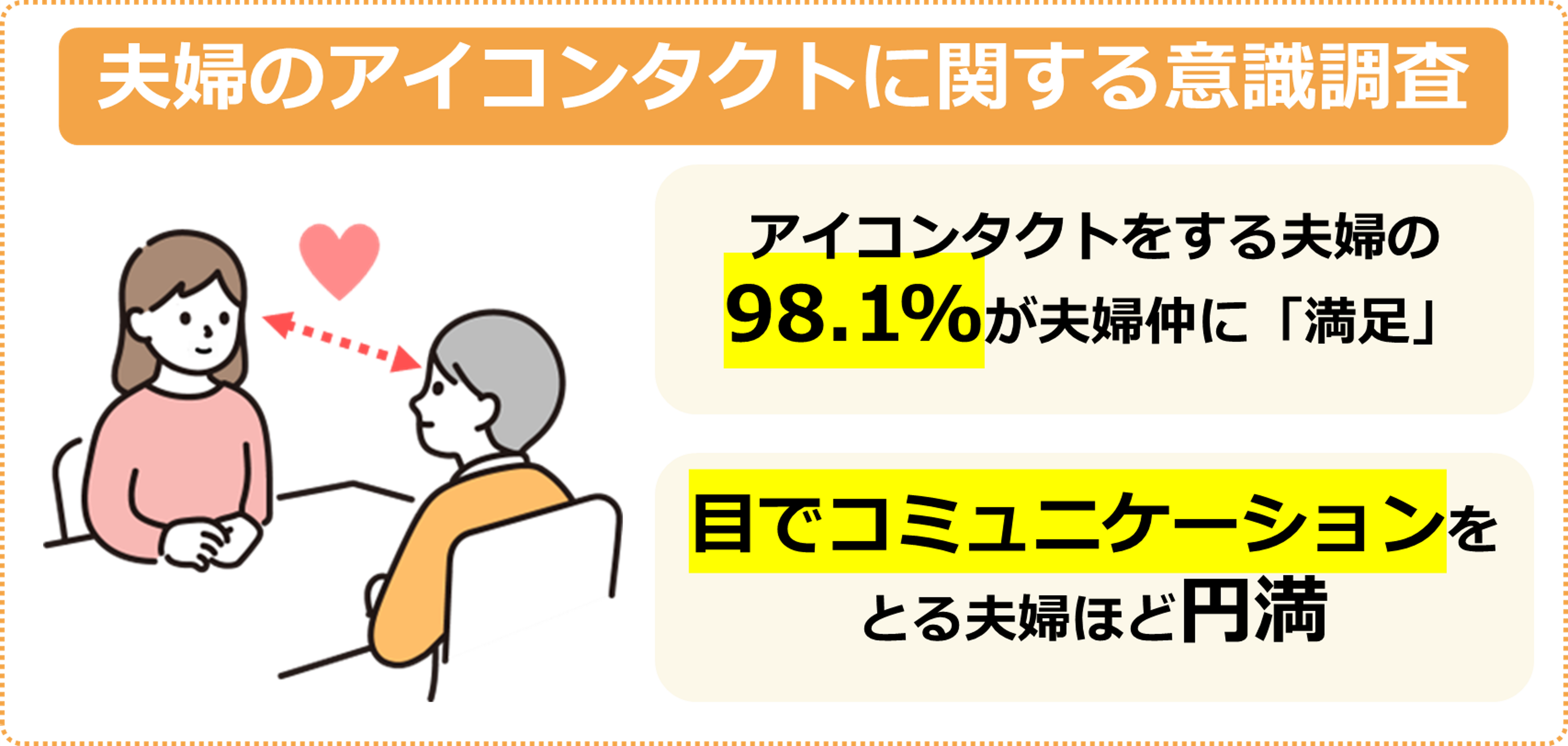・アイコンタクトが夫婦仲につながる?アイコンタクトをする人の98.1%が夫婦仲に「満足」